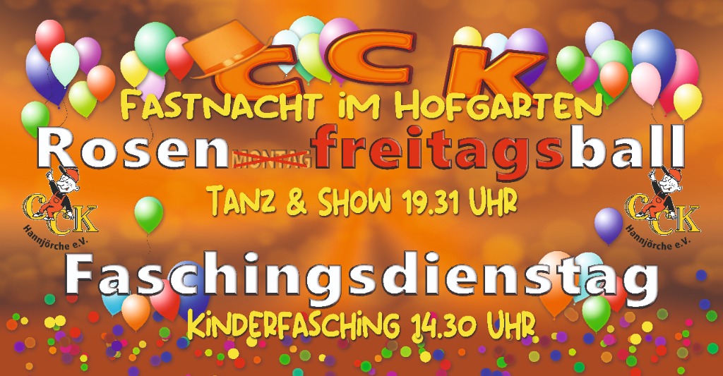 Rosenmontagsball auf Freitag den 13.02.2026 vorverlegt.